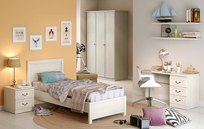 Лаконичность и сдержанность коллекции молодежной мебели Камилла поможет создать гармоничный и современный интерьер. Письменный стол с интегрированной тумбой, вместительные комоды, распашные шкафы и другие функциональные модули выполнены в нейтральных оттенках и подойдут для комнаты любой стилистики.